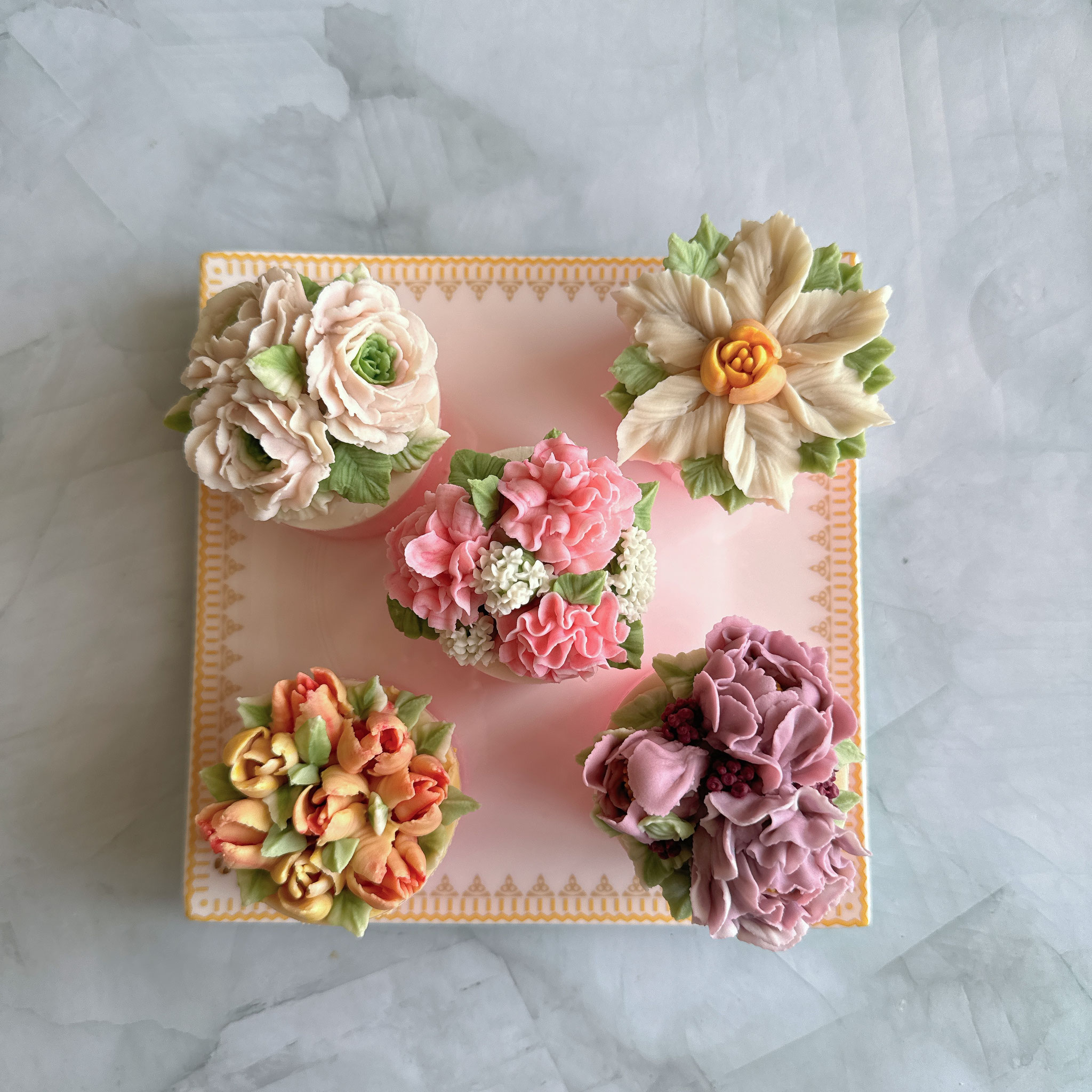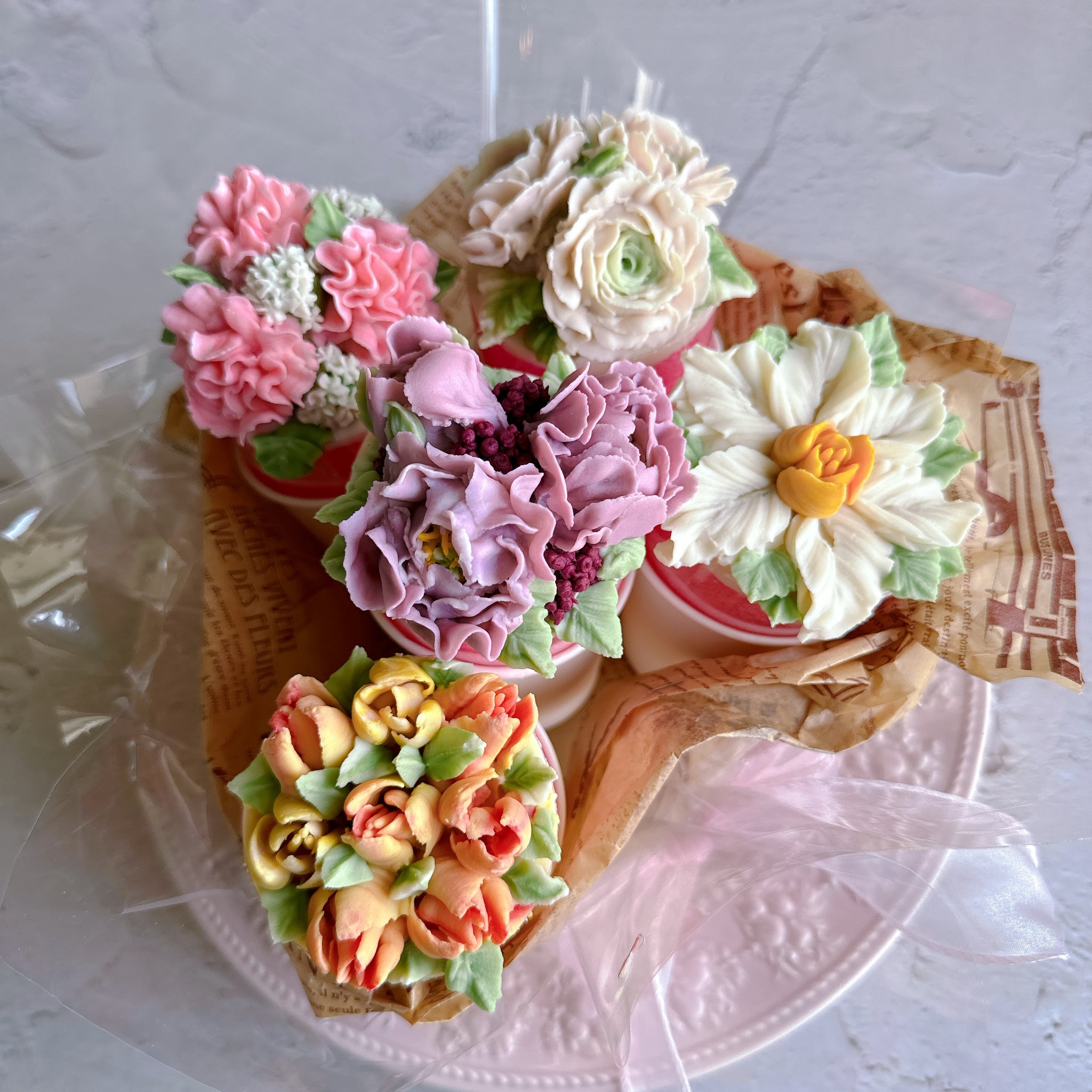 韓国の伝統菓子ソルギと白餡を使ってよりリアルに表現されたたくさんの種類のお花どちらも学べるとっても贅沢な充実コース。